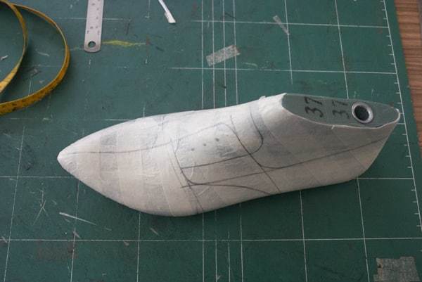 1. Cover the outer side of the shoe last with masking tape