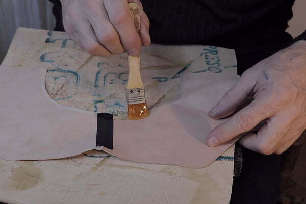 Here is the step where you will use glue ( neoprene glue). In order to assemble all leather parts of the sneakers you will need to place glue in the places that you need to attach.